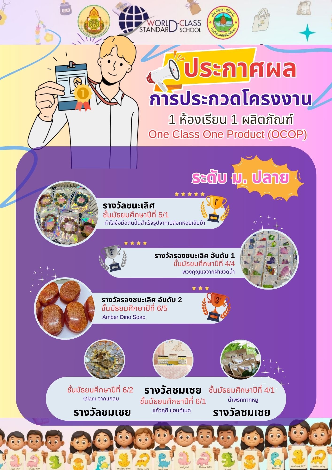 ประกาศผลการประกวดโครงงาน 1 ห้องเรียน 1 ผลิตภัณฑ์ (One Class One Product : OCOP) ระดับชั้นมัธยมศึกษาตอนปลาย โรงเรียนสหัสขันธ์ศึกษา สำนักงานเขตพื้นที่การศึกษามัธยมศึกษากาฬสินธุ์