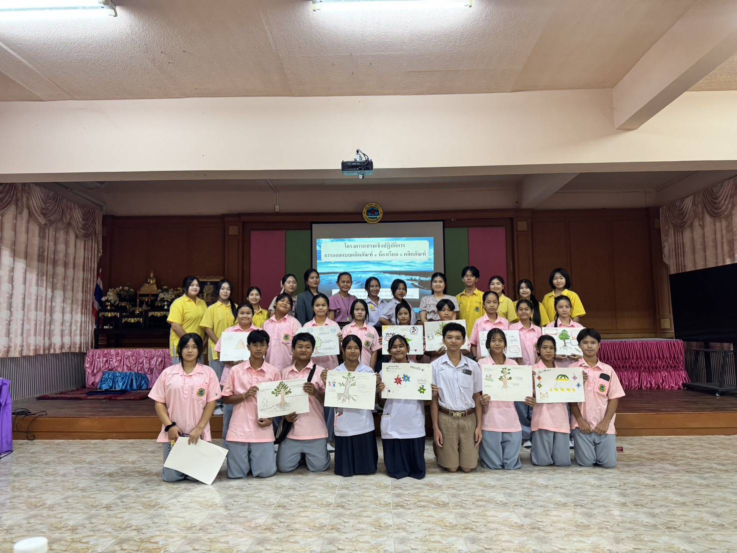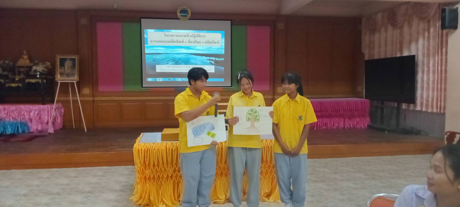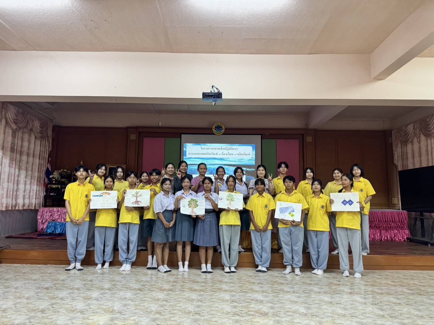 งานโรงเรียนคุณภาพ กลุ่มบริหารงานวิชาการจัดโครงการอบรมให้ความรู้นักเรียนแกนนำ โครงการออกแบบผลิตภัณฑ์ 1 ห้องเรียน 1 ผลิตภัณฑ์ เพื่อให้นักเรียนทุกห้องเรียนนำไปขยายผลและพัฒนาศักยภาพของนักเรียนในการคิดค้นและออกแบบผลิตภัณฑ์ ด้วยฐานทรัพยากรท้องถิ่น